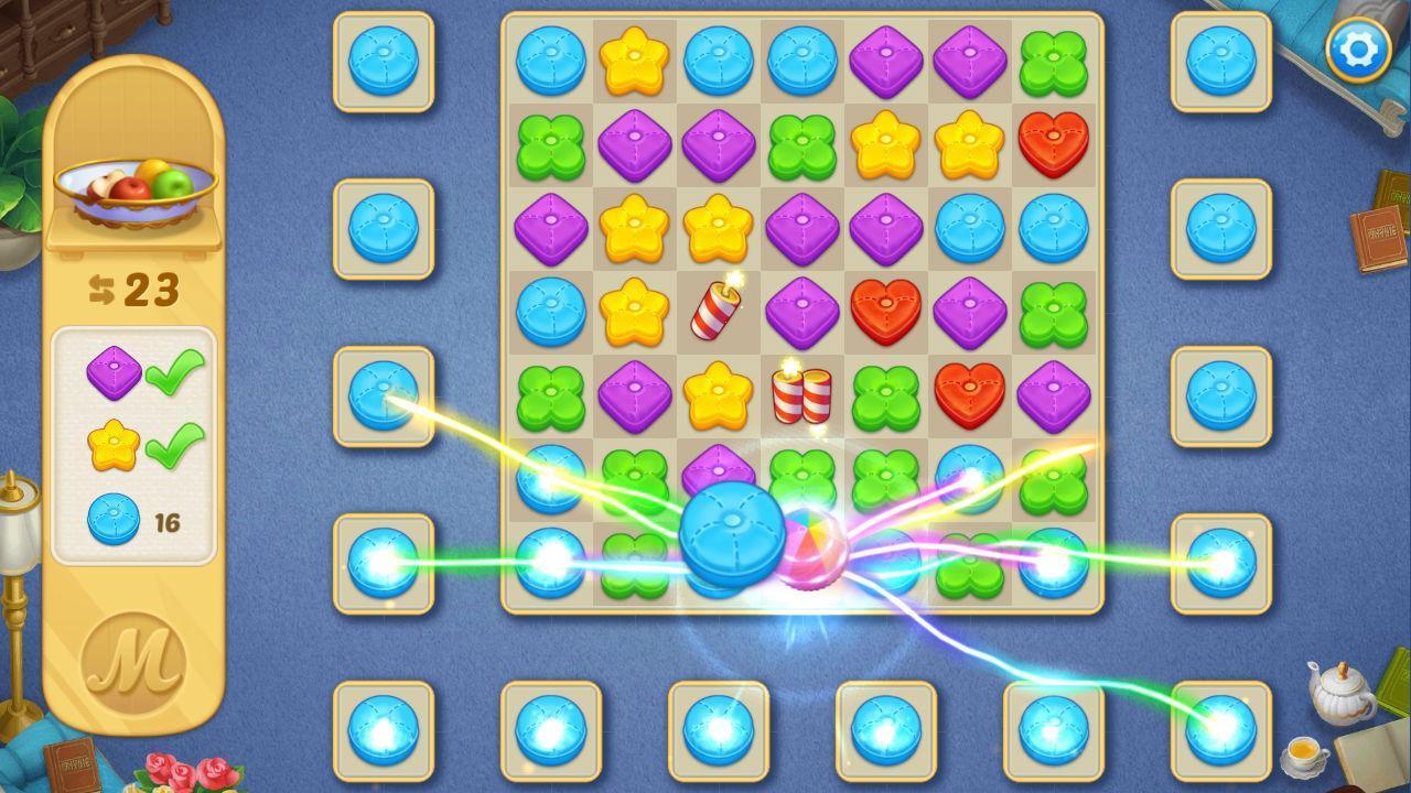 Much like any other match game, the difficulties turn up a notch every time you complete a grid. New items are added, grids become more complex, and the number of turns becomes more measured. Furthermore, you will need to complete the goals of each grid to earn a star, which, in turn, can be used to finish off tasks within the house. These tasks start as fixing parts of the house, replacing furniture, and even dealing with the neighbors. Eventually, earning stars during match games leads to unlocking more rooms in the house. All told, you can easily play hundreds of matches before getting the entire mansion in shape.